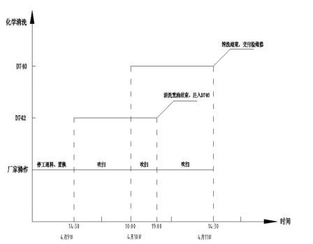 (4) 2014 shutdown using gas phase cleaning technology takes a total of 85 hours, and in 2012 the use of diesel chemical cleaning and passivation liquid takes a total of 99.3 hours, the use of gas phase cleaning after shutdown last save 14.3 hours, and 7 hours of vacuum evaporating tower tower extension.